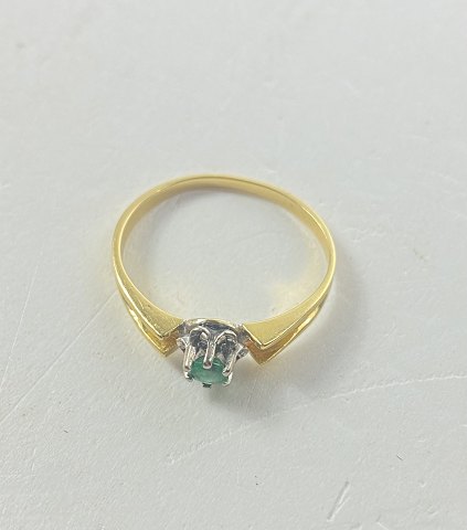 Ring udført af 18 kt. guld fattet med grøn smaragd. Ringstr: 59. Vægt: ca. 2,59 gr. Fremstår med skævhed på ringskinne.