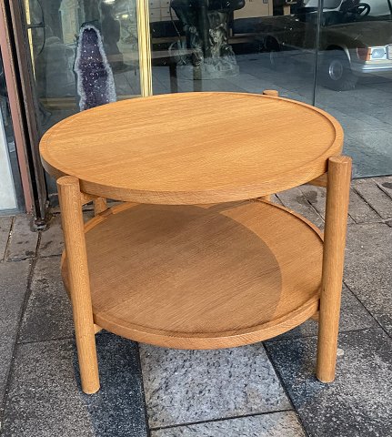 Hans J. Wegner for PP møbler - Bakkebord af massivt egetræ, foldbart stel, løse vendbare bakker. Ø. 35 cm.