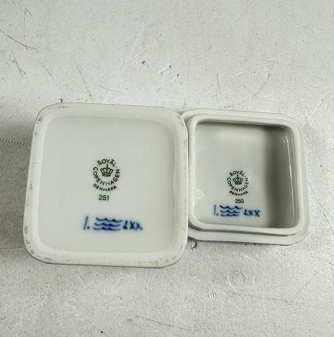 Royal Copenhagen - 'Musselmalet riflet' / blue fluted lågkrukke / æske dessin nr. 251 / 250. H. 6 B. 7 cm.
