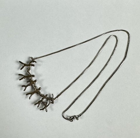 Halskæde af sterling sølv, vedhæng med sammensatte figurer. L. ca. 45 cm. Vægt: ca. 6,7 gr.