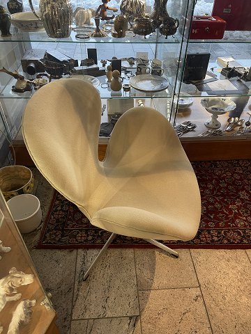 Arne Jacobsen - 'Svanen' - Lænestol betrukket med grønt uld, helstøbt profileret firpasfod af aluminium. Sædehøjde 38 cm. Formgivet 1957- 1958 som del af totalindretningen på hotel Royal i København. Fremstillet hos Fritz Hansen.