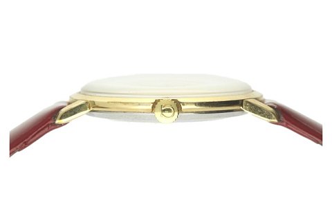 Uret har en 31mm kasse af forgyldt metal, kassen er monteret på en rød læderrem, afsluttet med c-spænde. Uret har en flot sølvfarvet skive med stregindeks. Uret er udstyret med en Omega cal. 620 som er et mekanisk værk med manuelt optræk.