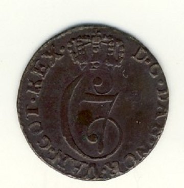 Christian VII, 2 skilling 1780. Umiddelbart ser det ud til af mønten er slået i kobber selvom den burde være i sølv. Kobberafslag? Samtidig forfalskning?