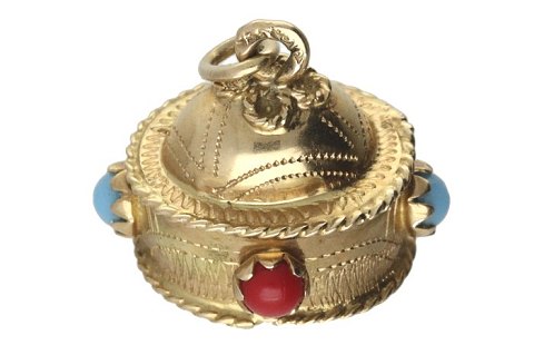 Vedhæng af guld 14kt. fattet med blå, røde og grøn sten.