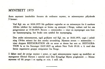 1975, Royal set in box, including original specifictions paper from The Norwegian Mint.