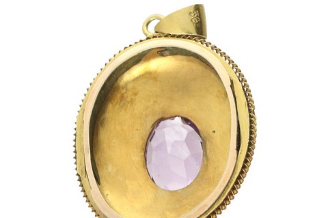 Antikt vedhæng af guld 14kt fattet med ametyster