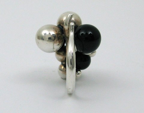 Georg Jensen - Stor 'Moonlight Grapes' ring i sterlingsølv med tre onyxperler. Ringstr. svarende til 55 (str. 60 angivet i ringskinne). Vægt: ca. 21,73 gr.