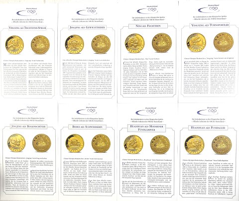 Tyskland - Samling af 8 mønter/medailler fra OL i Beijing 2008