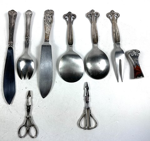 2 kageknive - segl - serveringsspade - salatgaffel - kødgaffel - serveringsske - 2 sukkertænger.