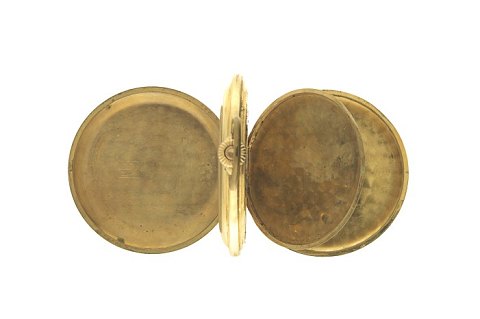 Dobbeltkapslet lommeur af forgyldt metal.