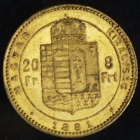 Ungarn - 20 Francs / 8 Forint - 1881 - Ferenc József - Guld