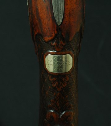 Dette gevær er fremstillet af det lille firma H. Sturm i Suhl, Tyskland. Våbnet er med smukt graverede låse med haner i form af delfiner. Firmanavnet er indlagt med guld i låseblikkene "Henr Sturm in Suhl". Firmaet fusionerer senere med Spangenberg & Sauer. Løbene er blånerede og i skinnen er der indlagt med guld "Canon Tordu". Dette gevær er en gave fra Frederik VI til Johan Wilhelm Cornelius Krieger 1788-1857 - som bliver slået til Ridder 6. oktober 1829 hvor han får overrakt dette gevær som gave. Der er i den forbindelse indlagt et sølvskilt med indskriptionen "Minde Sorgenfri den 6. Oktober 1829"