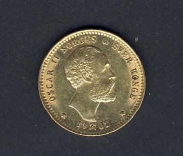 Oscar II, 10 kr 1902, guld - pænt eksemplar.
