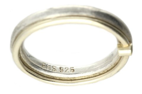 Ring af sterlingsølv med ring af guld fattet med brillant, ca. 0.01ct.