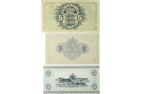 Danmark - 1 Krone 1918 H, 5 Kroner 1942 J og 5 Kroner 1958 B9 - 3 stk.