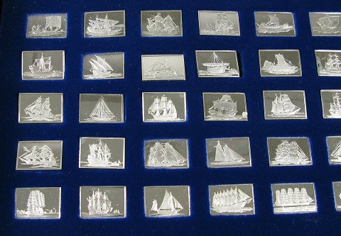 Franklin Mint, 50 stk. miniature sølvbarrer af sterling sølv fra serien "Historiens store Sejlskibe".