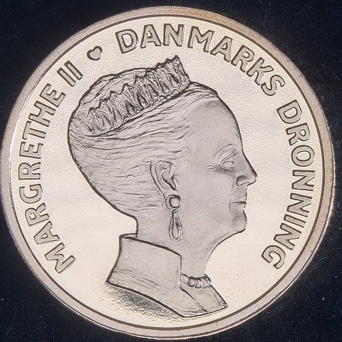 Denne 20-krone i proof kvalitet blev udsendt i anledning af Hendes Majestæt Dronning Margrethes 80 års fødselsdag 16. april 2020.
