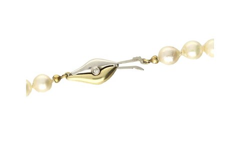 perlecollier med lås af guld og hvidguld 14kt. fattet med brillanter, ialt ca. 0.050ct.