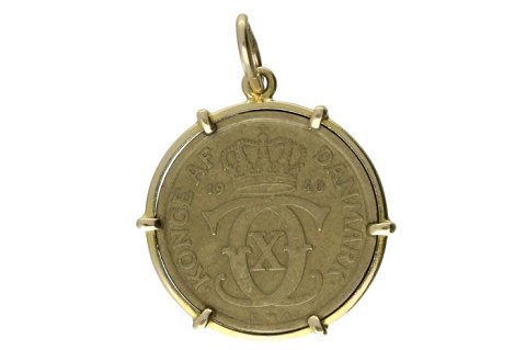 Vedhæng af guld 14kt. fattet med ½ krone fra 1940.