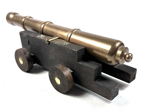 Kanon af bronze på lavet af mørkbejdset eg.