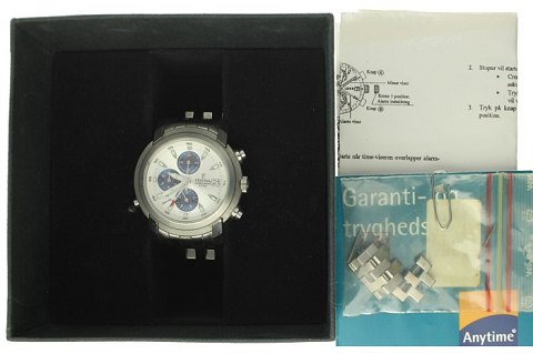 Uret fremstår brugt og medfølges af garantibevis, æske samt ekstra led.
