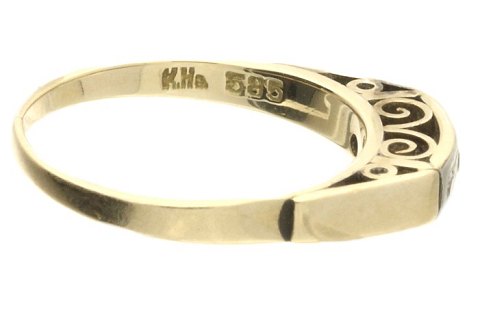 Ring af guld 14kt. fattet med diamanter, ialt ca. 0.03ct.