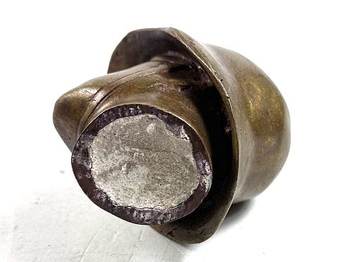 Lille buste af metal i form af tysk soldat, hjelmmærke med svastika
