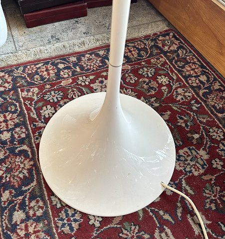 Verner Panton Pantella standerlampe med skærm af hvidt plast. Fremstillet hos Louis Poulsen og formgivet i 1970. H. 130 cm., skærm diameter 50 cm. Fremstår velholdt.