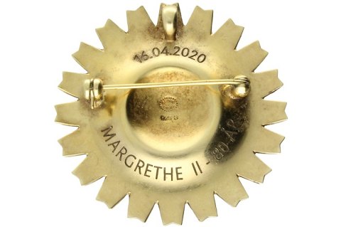 Georg Jensen - Daisy - Margrethe II´s 80-års fødselsdag - broche/vedhæng af forgyldt sterlingsølv med emalje.