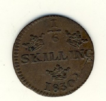 Karl XIV Johan, 1/6 skilling 1830
