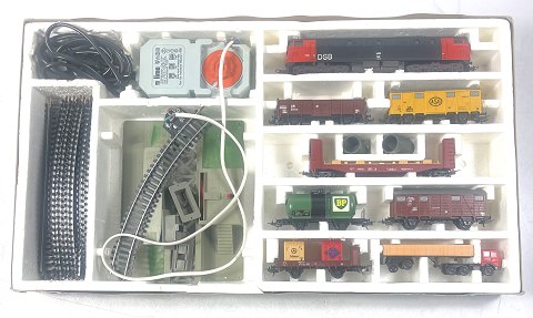 Der medfølger masser af skinner, Lima strømforsyning i form af transformator samt flere modelto.