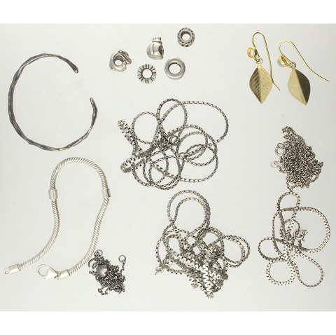 4 halskæder - 1 par øreringe - 5 charms - 1 armlænke - 1 armring.