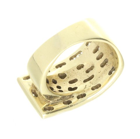 Ring af guld, formodentlig 14kt. fattet med klare sten