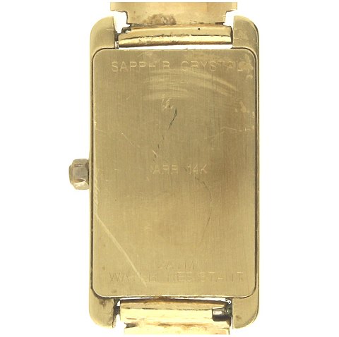 Uret har en 19x34mm kasse af guld 14kt. kassen er monteret på en lænke af trefarvet guld, formodentlig 14kt. Uret har en hvid skive med romertal. Uret er udstyret med et quartz værk.