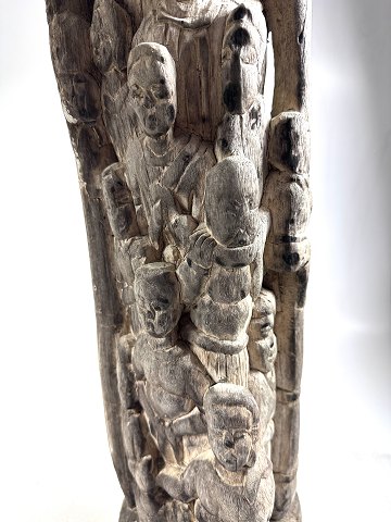 Piedestal askebæger af træ med udskæringer.