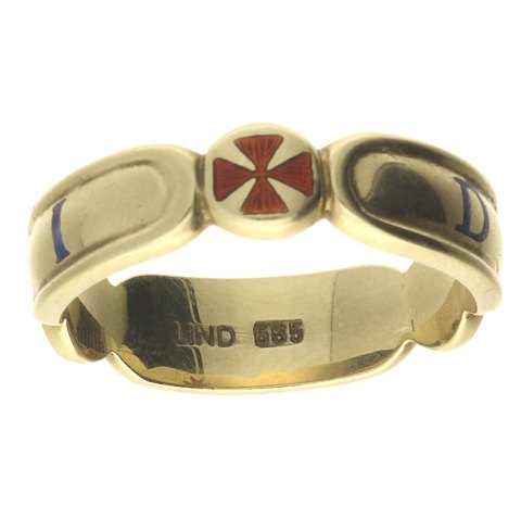 Guldsmed Lind - Frimurerring 8. grad - logering af guld 14kt. med emalje