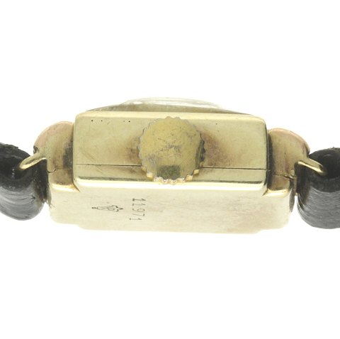 Uret har en 14x14mm kasse af guld 14kt. kassen er monteret på en læderrem, afsluttet med c-spænde af metal. Uret har en sølvfarvet skive med arabertal og stregindeks. Uret er udstyret med et mekanisk værk med manuelt optræk.