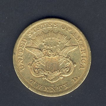 Den første type af de amerikanske double eagles perioden 1849-76. Her er der tale om et af årene fra borgerkrigen som er meget efterspurgte også i andre sammenhænge end blandt møntsamlere. Når der så samtidig er tale om et lille oplag er det forventeligt at mønten koster mere end normalt. Kun præget i 1.042.500 eksemplarer!