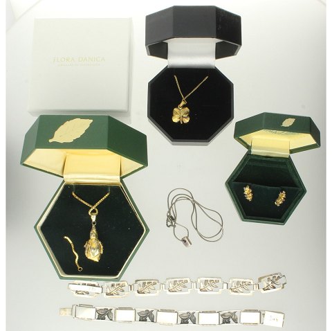 Flora Danica m.fl. - samling sølvsmykker(10)