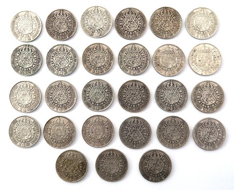 Gustav V, 1 krone, 1910 - 1941, sølv, Sieg 52 + 53, KM 557.1 + 557.2 (Komplet incl. begge 1924)