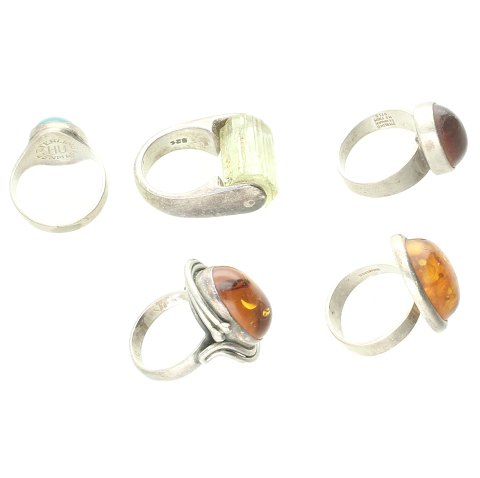 N.E. From m.fl. - samling ringe af sterlingsølv(5)