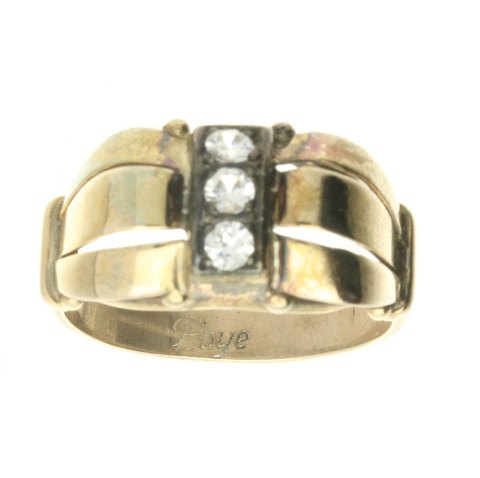 Ring af guld formodentlig 8kt. fattet med klare sten.