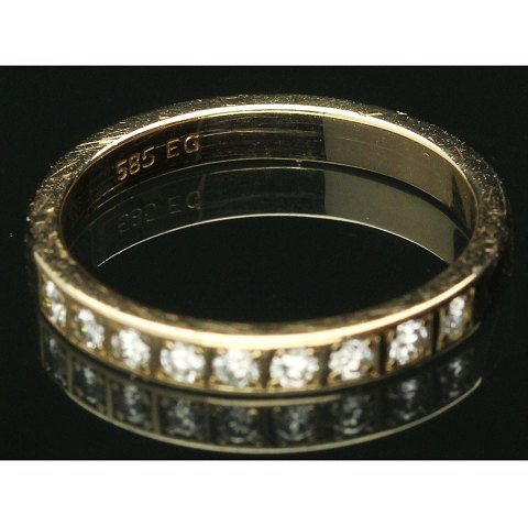 Alliancering udført af 14 kt. guld fattet 9 diamanter på i alt ca. 0.22 ct. Stemplet 585, EG. Ringstr: 57. Vægt: ca. 3,38 gr.