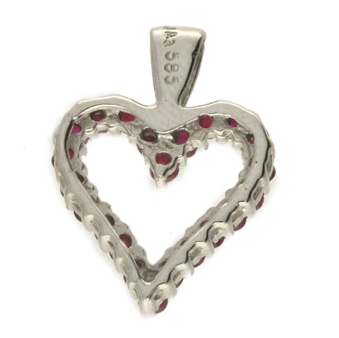 Hjerte vedhæng udført af 14 kt. hvidguld fattet med røde sten. Vægt: ca. 1,25 gr.