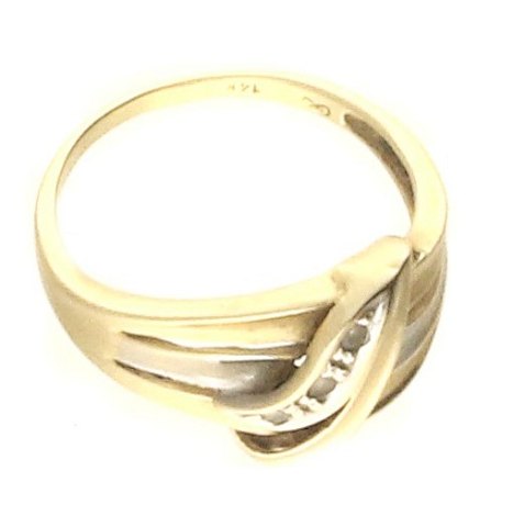 Ring udført af 14 kt. guld fattet med klare sten. Ringstr: 58. Vægt: ca. 3,54 gr.