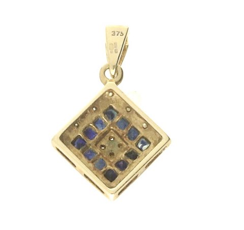Vedhæng udført af 9 kt. guld fattet med diamanter. Stemplet 375. Vægt: ca. 1,23 gr.