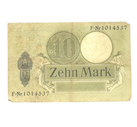Tyskland - 1906 - Zehn 10 Mark. Dateret Berlin 6 oktober 1906. 7-cifret serienummer: F. Nr, 1014537.