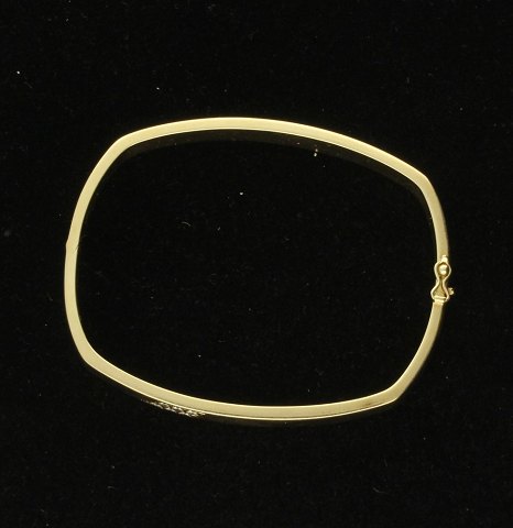 Armring udført af 14 kt. guld fattet med 3 brillanter, i alt ca. 0.06 ct. Indvendig 61 x 51 mm. Vægt: ca. 13,16 gr.