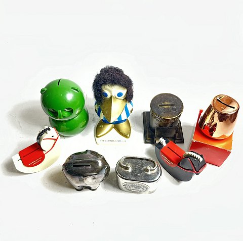 En samling sparebøsser bestående af: