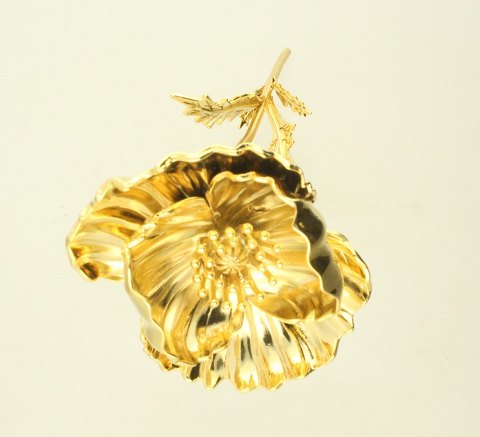 Dekorations rose udført af forgyldt metal. L. ca. 15 cm. Leveres i sort æske.